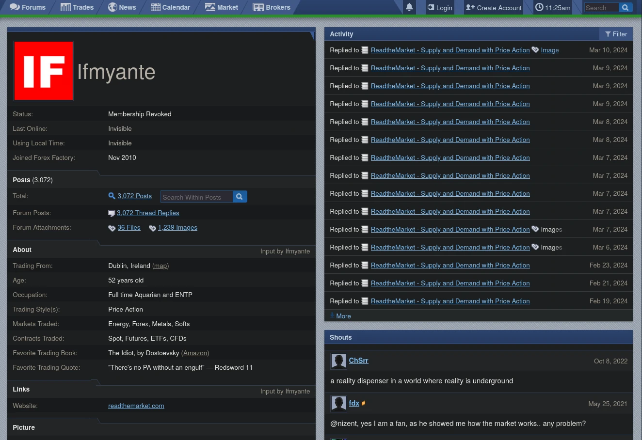 قراردادن ژورنال های معاملاتی در فارکس فکتوری. بیشترین فعالیت او در فضای مجازی در این وب سایت بوده است.